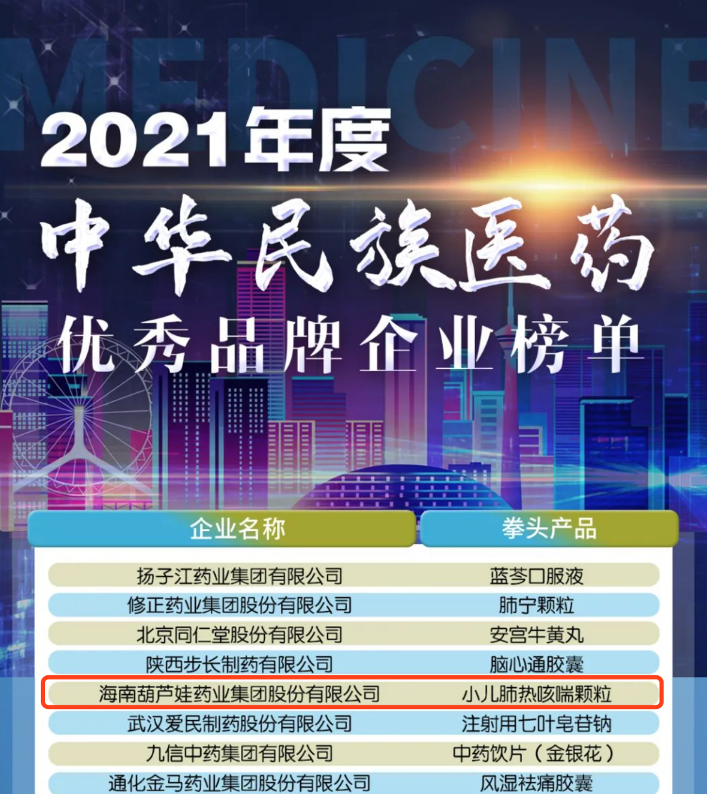 12月29日,全国工商联医药业商会发布了“2021年度中华民族医药优秀品牌企业榜单”,4556银河国际药业集团凭借黄金单品小儿肺热咳喘颗粒(4克)实力登榜。