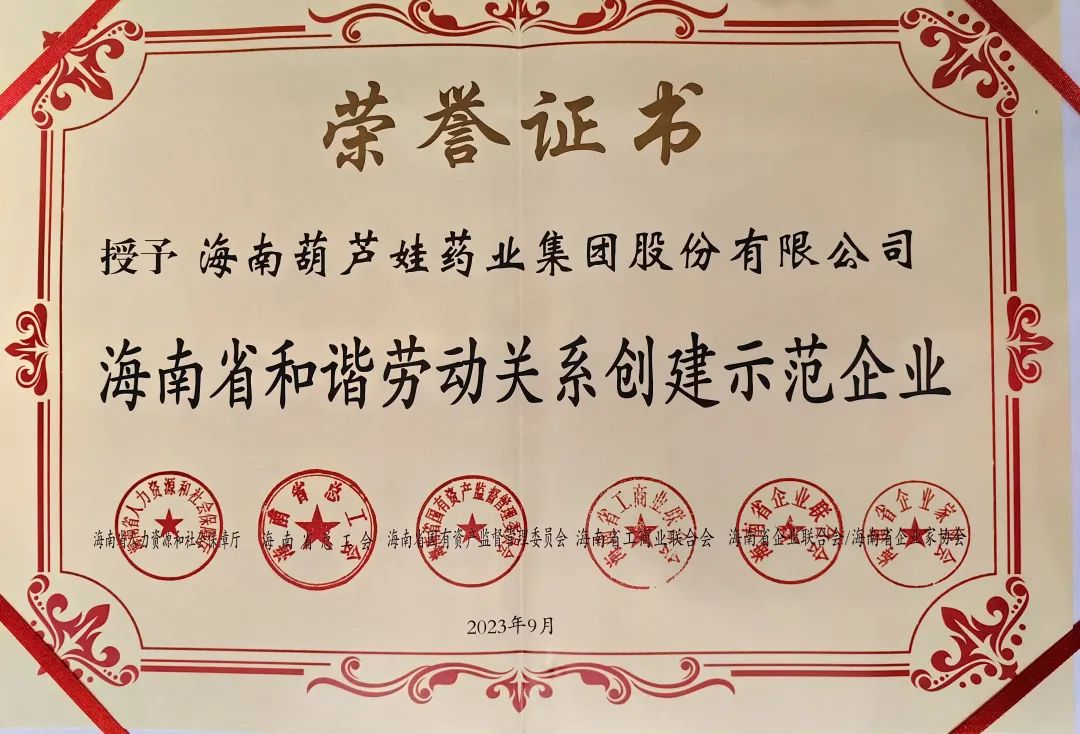 4556银河国际药业集团获评“海南省和谐劳动关系创建示范企业”